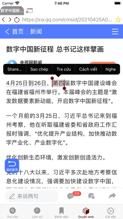 - Gõ địa chỉ web sau đó đọc nội dung trên web, bôi đen và chọn tra từ hoặc nghe