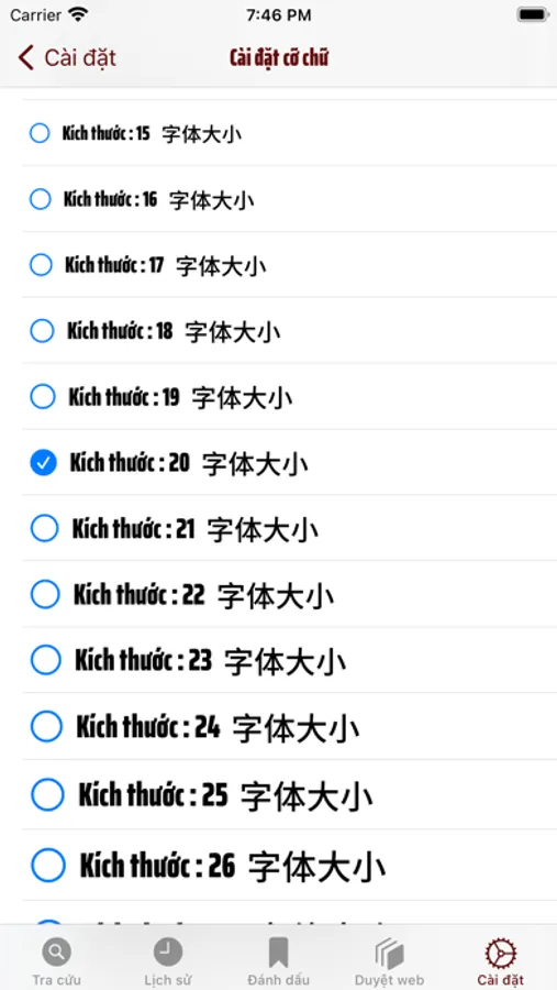 - kéo sang phải để xem lịch sử và đánh dấu