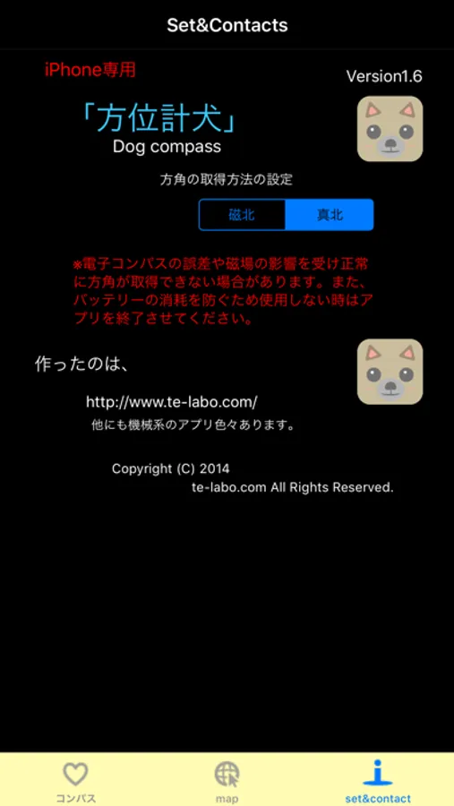 iPhoneを携帯用コンパスとして利用することができるアプリです。方位針をわんちゃんの大好きなソーセージで表現しました。iPhoneの傾きと現在地の地図を確認でき、目的地までの徒歩でのルート検索できます。徒歩で(または犬と)散歩する時地図の確認に最適です。(注意)iPod Touchはセンサーが無いので使えません。