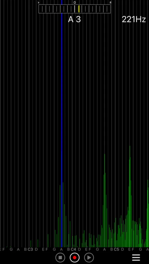 Moreover, value (Hz) of the pitch and the music scale name are displayed in the top of the screen.