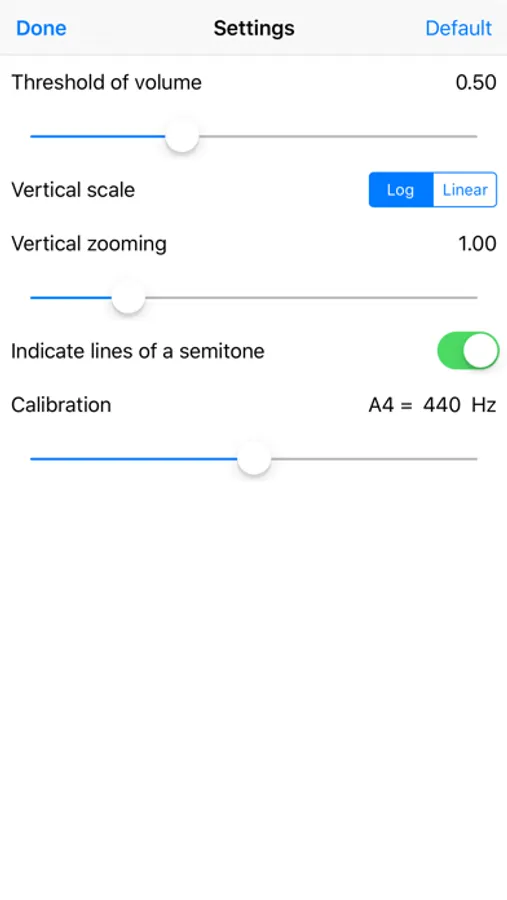 - The spectrum of the voice input from your device's microphone is in real time displayed.