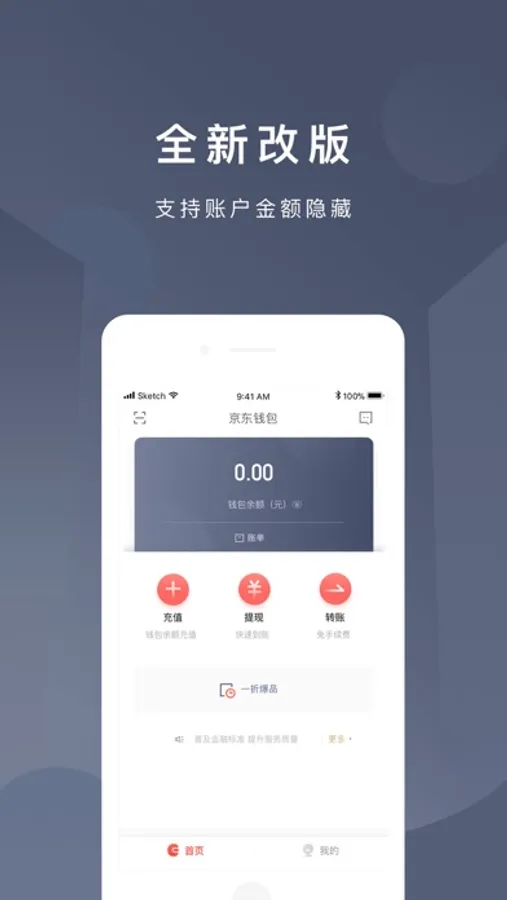 新版京东钱包对旧版庞大的体量进行精简,使其更符合定位。京东钱包不再承载生活服务类产品,这些服务将迁移至京东金融APP。当前,充值、提现、转账功能为京东钱包的核心功能。新版本还对界面风格重定义,使其更符合品牌文化,提升用户体验。