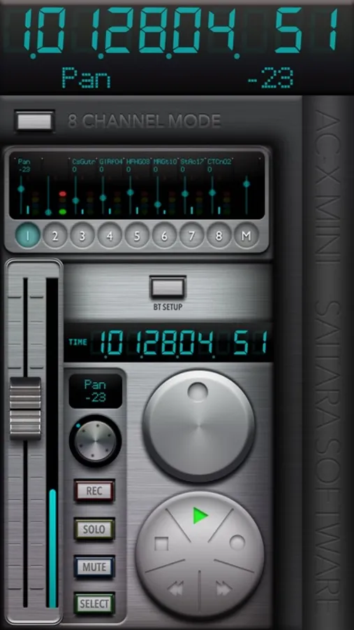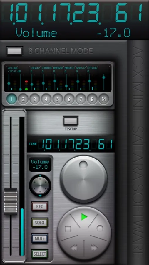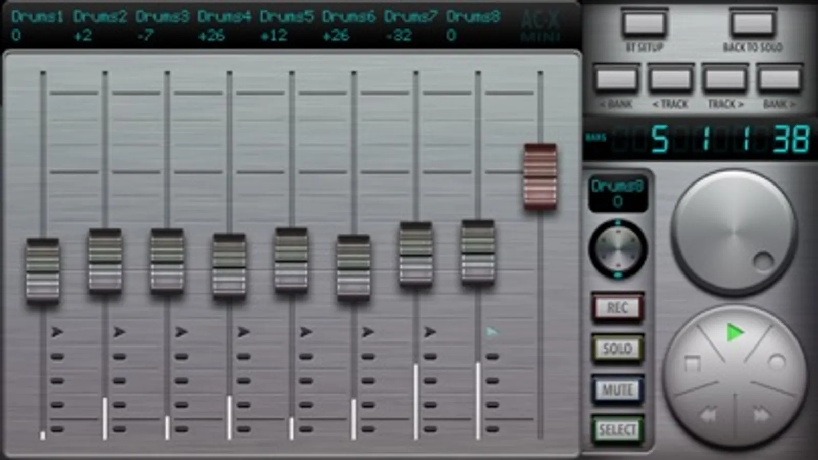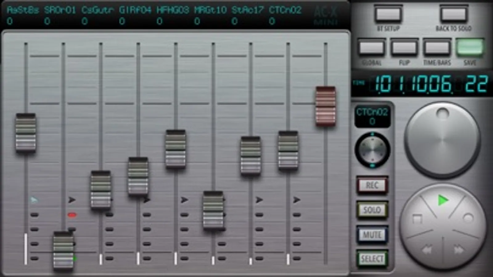 AC-X Mini (previously called AC-7 Core Solo) is the perfect Bluetooth/Wifi hand-held wireless remote controller for your DAW based music recording system. It was expressly designed to be used comfortably with one hand, so there’s no need to put down your guitar/mic/drink while setting up the next take. Turning your device to landscape orientation gives an 8 channel mixer section.