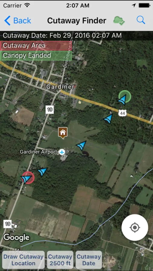 5. Helps to find your cutaway canopy: mark cutaway location and app will use windsaloft to calculate where it has landed.(In-App purchase required for past wind data)
