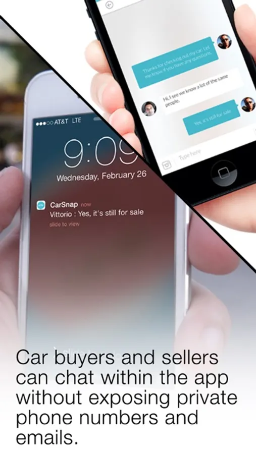 Chat: All chat between buyers and sellers remains within the CarSnap app. There is no need to give away your private information (phone numbers and emails) until you are ready.