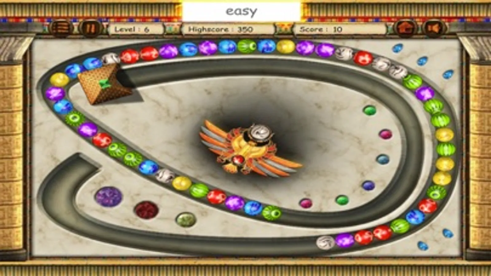 Temple Marble is a marble shoot out, match 3 game with the egyptian theme. It is easy to play, but truly addictive.