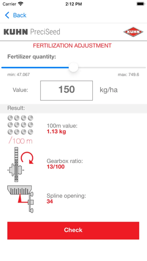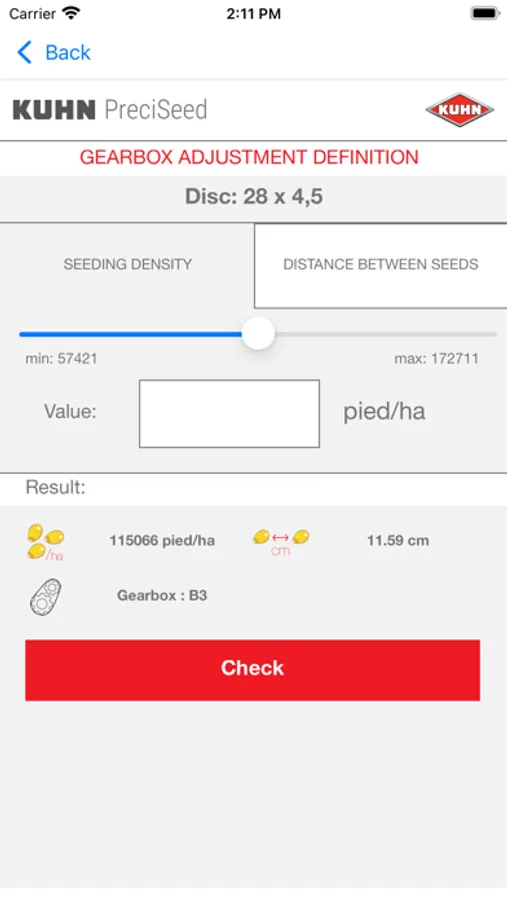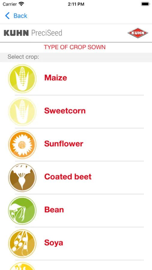 For precision seeding, KUHN has developed an adjustment assistance application for your PLANTER, MAXIMA and KOSMA seed drills. This application guides you through the adjustment process for seeding density, depth, fertilization and seeding protection (microgranulator) according to the seed variety (maize, sunflower, rapeseed…).