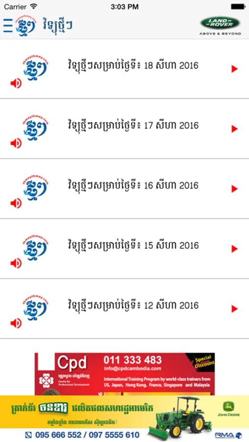 In this application, user can read the latest articles from ThmeyThmey Website and Radio.