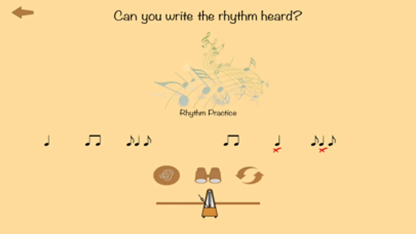 · Make rhythm dictations with selected notes so that the user can train their ears and transcribe a rhythm generated by the app.