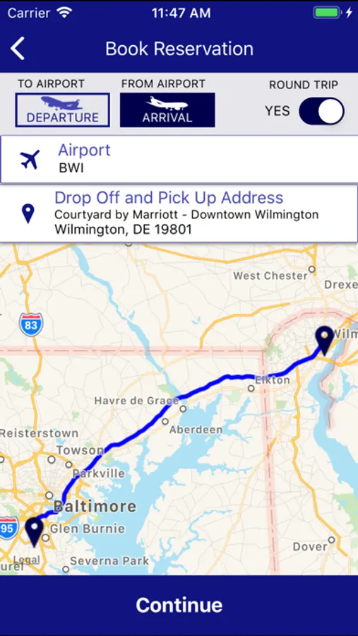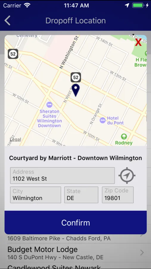 Delaware Express also provides pickup and drop off services from: