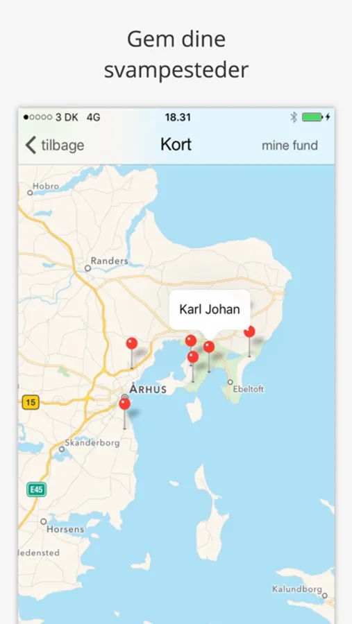 • Et kort med mulighed for, at sætte nåle og gemme sine svampesteder