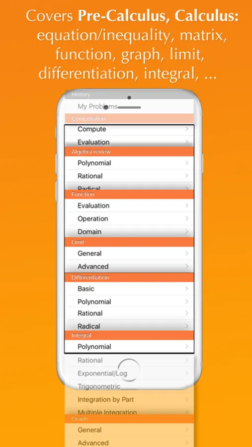 Math Solver covers problems at the level of College Algebra, Pre-Calculus and Calculus courses: