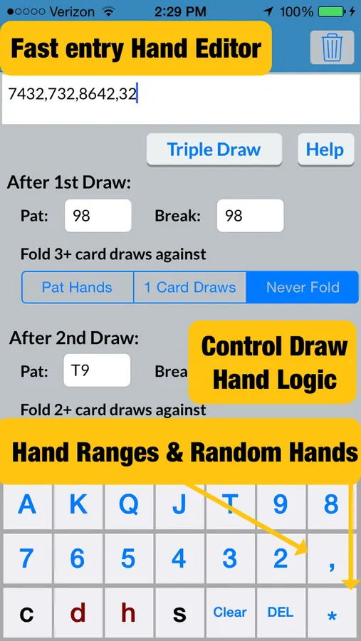 Draw Hand Logic Control: Determine how hands are patted, broken and folded. See how equity changes versus opponents who pat weakly, draw to stronger hands, break easily, or fold often.