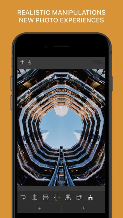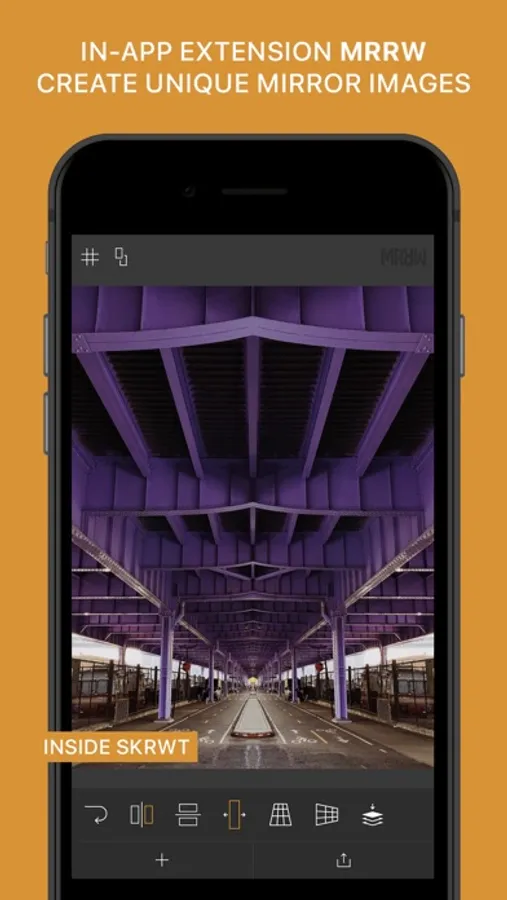 SKRWT presents four high precision mirror effects in this unmatched mirroring tool for your smartphone. With a refreshing approach to creative image manipulation, MRRW helps uncover the hidden symmetry in your best shots and enables you to find new creative and artistic freedom. Explore new possibilities in composition and use perspective correction and auto cropping in SKRWT-quality. Here goes for a never-ending stream of MRRWGRAMS!