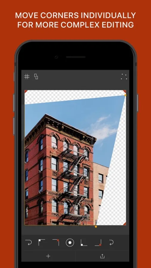 With 4PNTS, the good folks at SRKWT re-thought perspective correction workflows and put together a new must-have extension. A hands-on approach to professional photo transformation: 4PNTS lets you manually work one or more corner points of your image, turning perspective correction into a fully intuitive manipulation process. The 4-point-perspective-tool is available as an in-app purchase – so you get to artistically transform, skew and enhance your photos within SKRWT. Your individual take, your creativity, your shot.