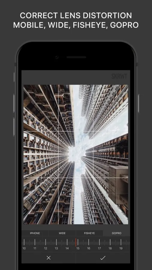 Kiss converging lines goodbye: SKRWT is the all-purpose perspective and lens correction app for symmetry lovers. Correct horizontal and vertical lines as well lens distortions for shots taken with adapters, DLSRs, with a GoPro or a drone camera. With the one-of-a-kind full auto-cropping functionality and the self-explanatory, intuitive user interface, SKRWT is the missing link in high-end smartphone photography. If you are a sucker for quality and symmetry, SKRWT is for you.