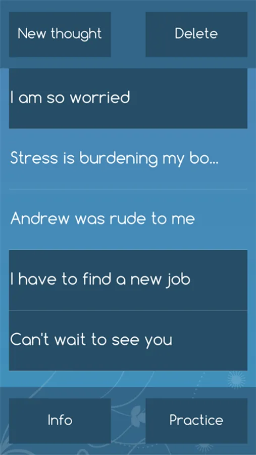 The AEON app helps users in practicing a mindfulness technique that requires individuals not to react in response to their thoughts, but to be aware of them and observe them while they are going away (distancing from thoughts).