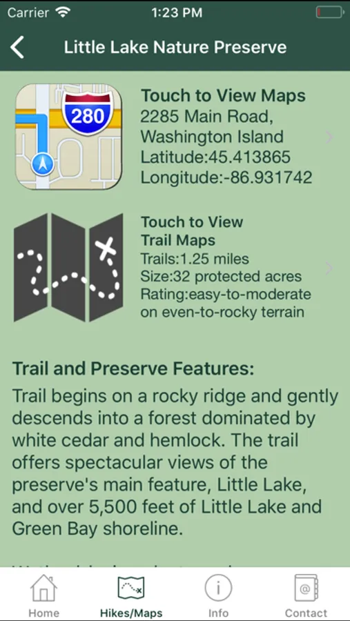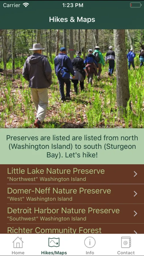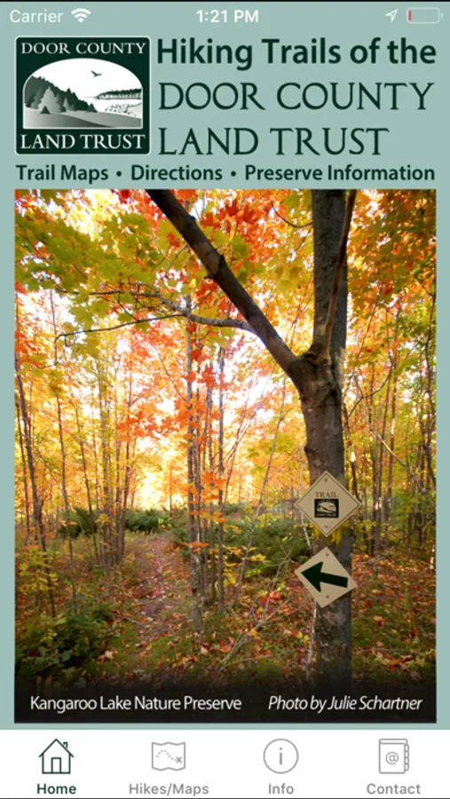 The app also provides information on wise use of the preserves, the "Explore the Door" guided hikes program, and the Door County Land Trust's mission.