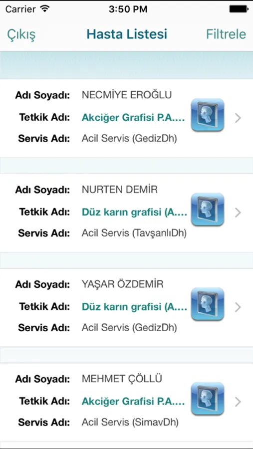 Filtrele özelliğiyle doktor istediği hasta veya hastalara rahatlıkla erişebilmektedir.