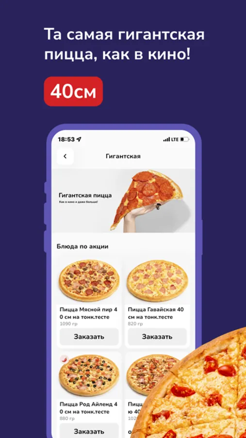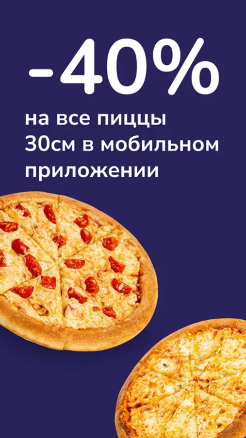 В мобильном приложении еще выгодней! Заказывайте пиццы 30см со скидкой 40%.