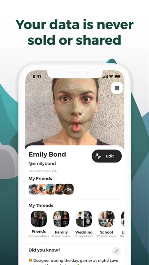 Focused on people you really know, we’re making social a safe, happy place without personal data mining.