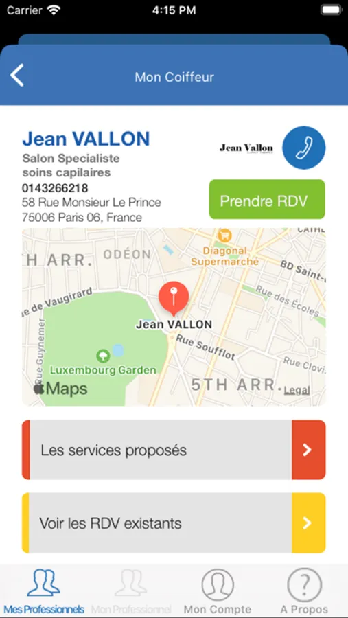 Gérez ainsi votre planning de RDV, trouvez le meilleur itinéraire pour vous y rendre, et consultez le catalogue de produits de chacun de vos professionnels.