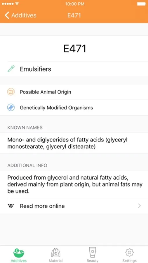 If you want to know which food additive, clothing material or ingredient in beauty product is of animal origin, this is the only right app for you!