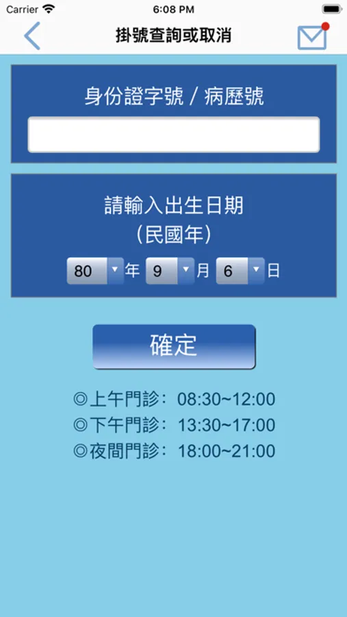 •貼心服務: 您的健康係本院的最終信念,本院將依您的需求,由系統主動提醒您的用藥時間、預防保健檢查、疫苗施打時間。