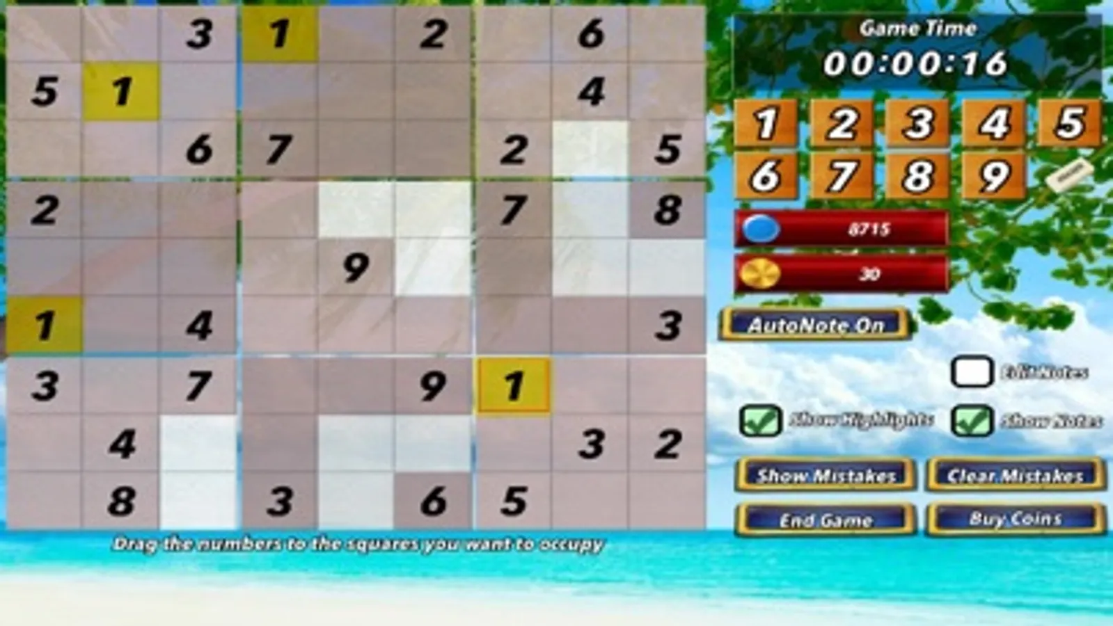 Auto Note feature, save you time entering the notes for each square. The advanced note feature also keeps the notes updated when numbers are entered.