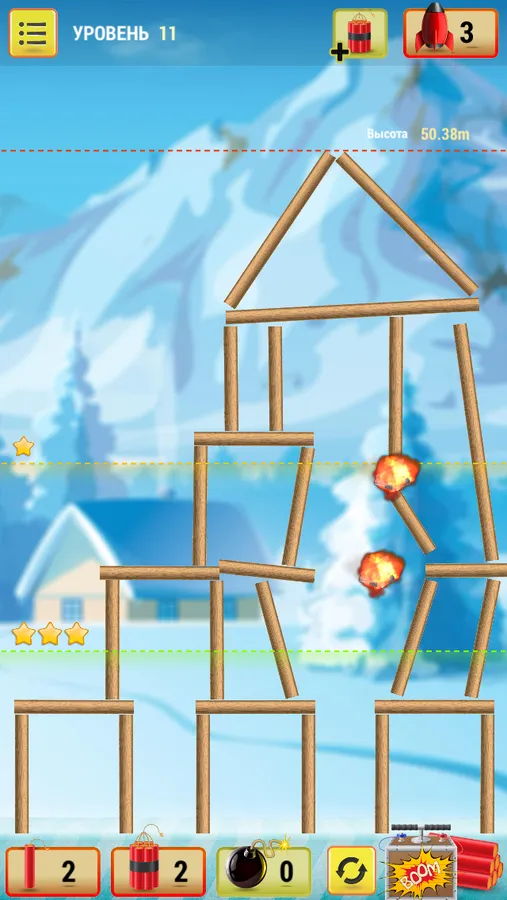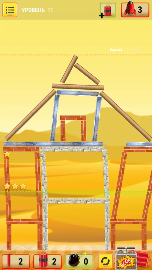 In the game you have to try yourself as a destroyer of old buildings. For each operation, there is a limited amount of explosives and you have thoroughly calculated to destroy a building to the ground.