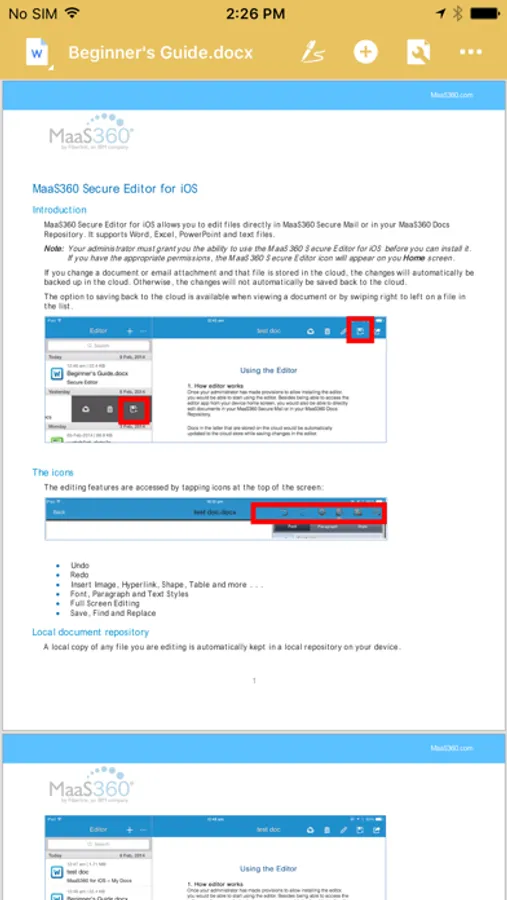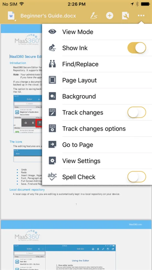 MaaS360 Secure Editor is a powerful office suite which allows you to work with your business documents while on the go.