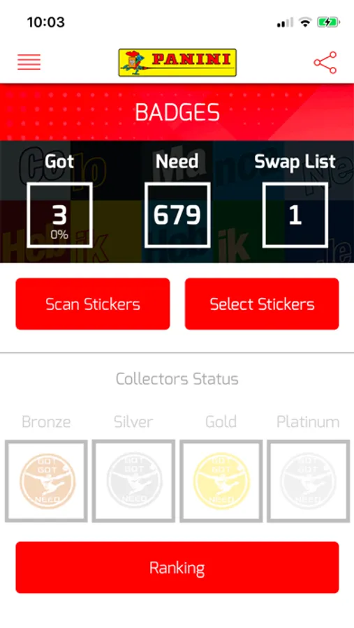 All you need is to download the app and manage your collections. Scan with your camera phone the stickers and get your check lists update. Use the Panini Collector app and gain the special Panini Collector badges and climb the ranking to become the best collectors of the month.