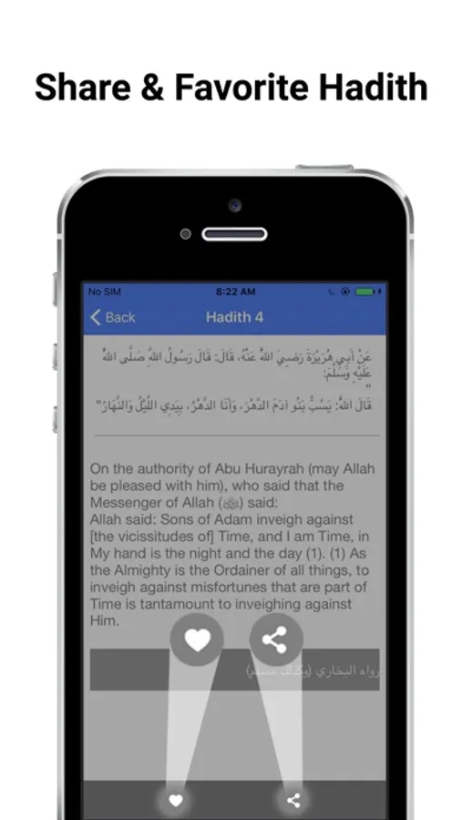 • Scrolling from right to left and vice versa is also available to read all the Hadith in one go