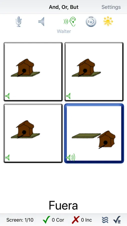 If any incorrect items are selected, the user will hear the “Show Me…” prompt and be given a chance to change their selections. When the user is confident that only the correct item is selected, they will again tap on the Check It button. As before, if the correct item is selected—and no incorrect items are selected—the frame of the correct item will turn green, and after a delay, the next screen will be displayed. Otherwise, the frame of the correct items will turn green, incorrect items will turn red, and items that were supposed to be selected, but were missed, will turn yellow. The app will pause so that the user can discuss the screen with their mentor.