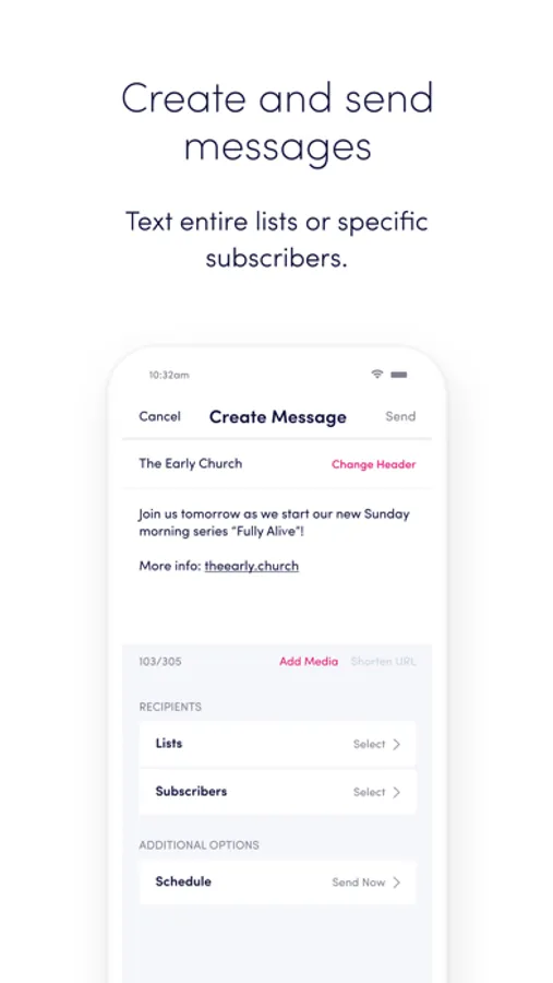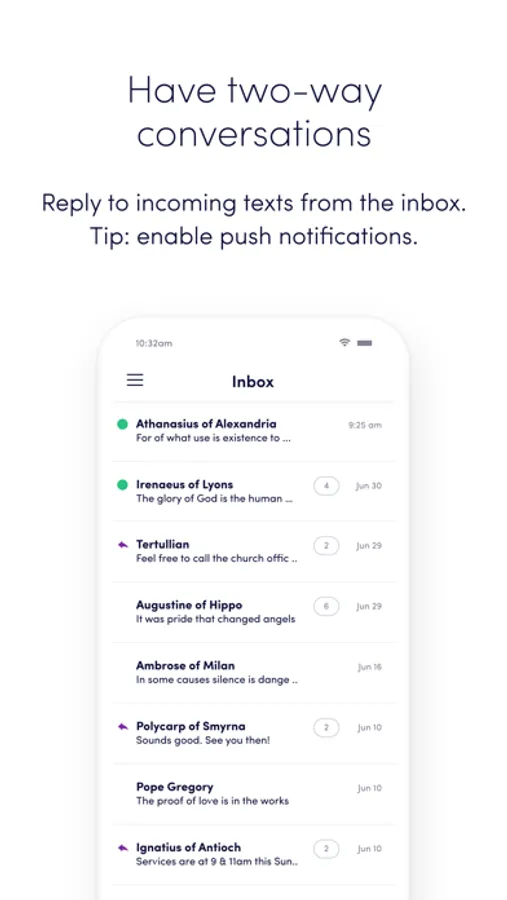 Powerful texting software for your church. Connect with your members via SMS from your iPhone. Send mass texts, reply to individual numbers, view useful statistics and more!