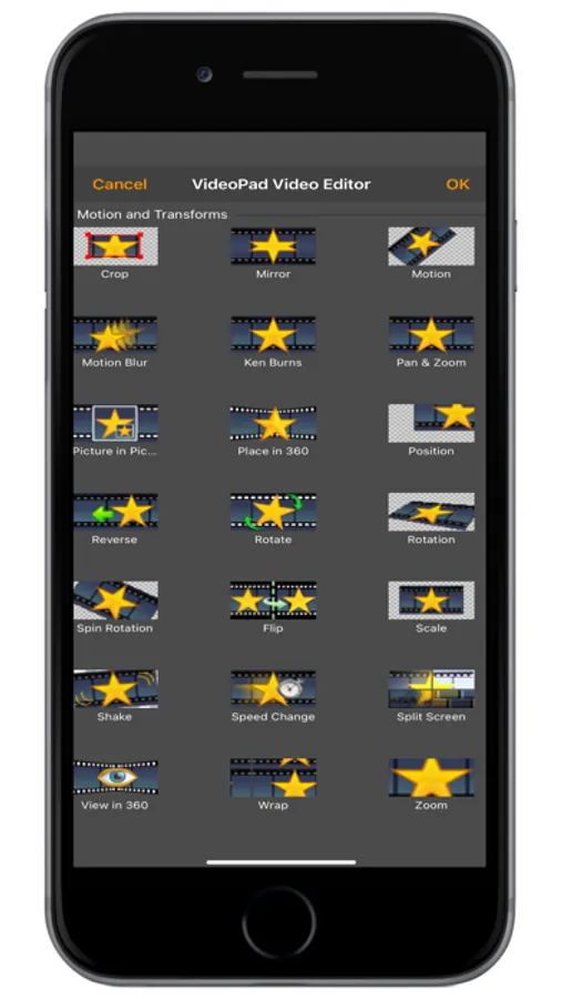 With VideoPad Video Editor for iOS you can also apply a wide variety of clip effects, transitions, speed adjustments, and many more!
