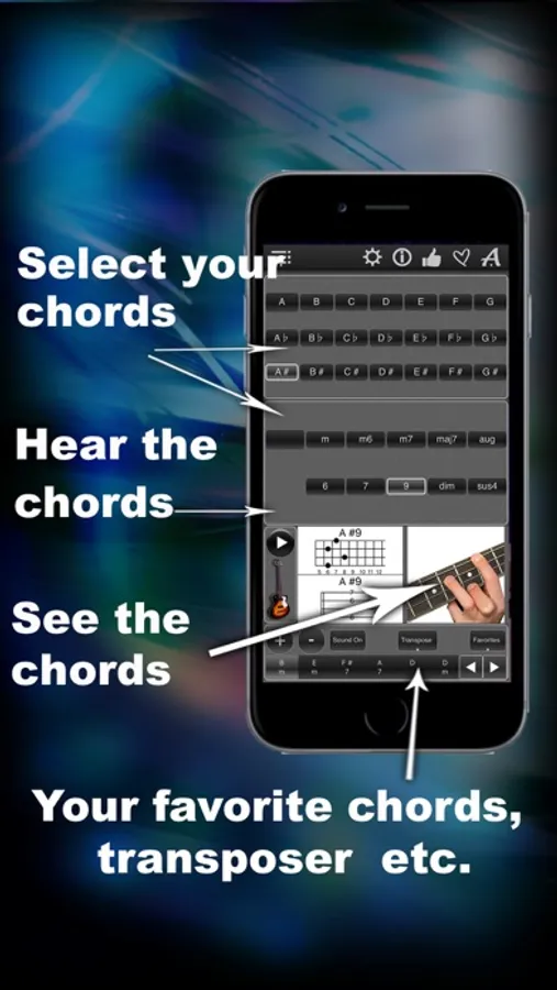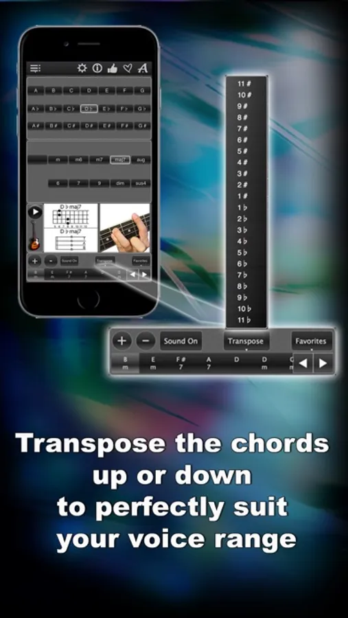 Take advantage of clear, easy-to-use interface with retina support and learn the basic and advanced chord charts.