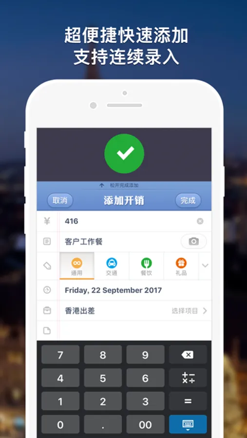 1.超快添加:一键添加报销,下拉连续添加,更有桌面快捷方式