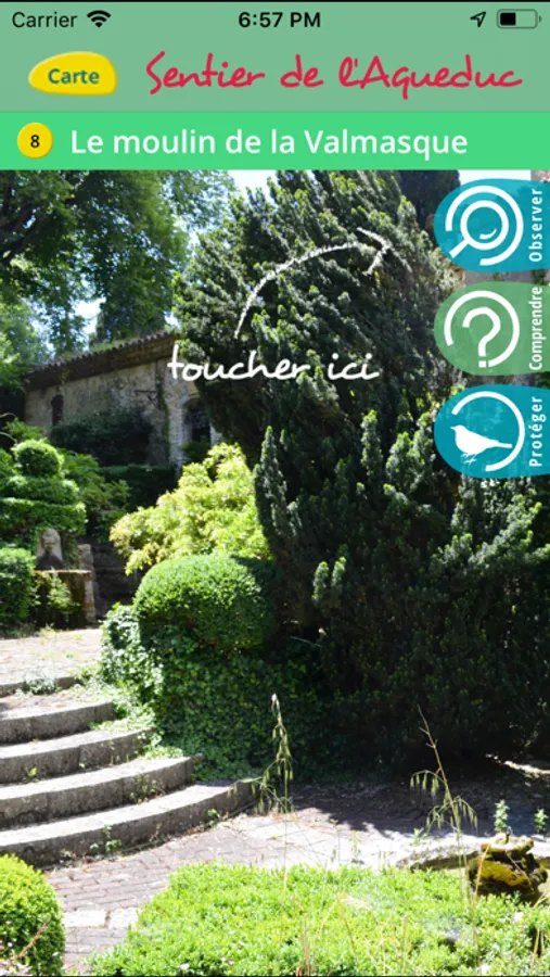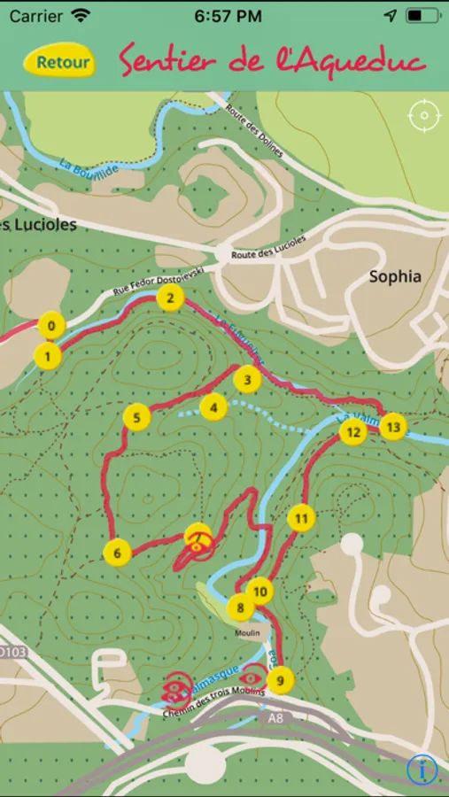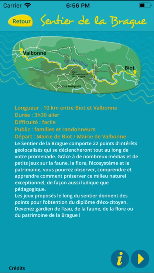 L'application propose une découverte ludique de la Rivière Brague à travers 3 itinéraires de randonnée situés dans son bassin versant.