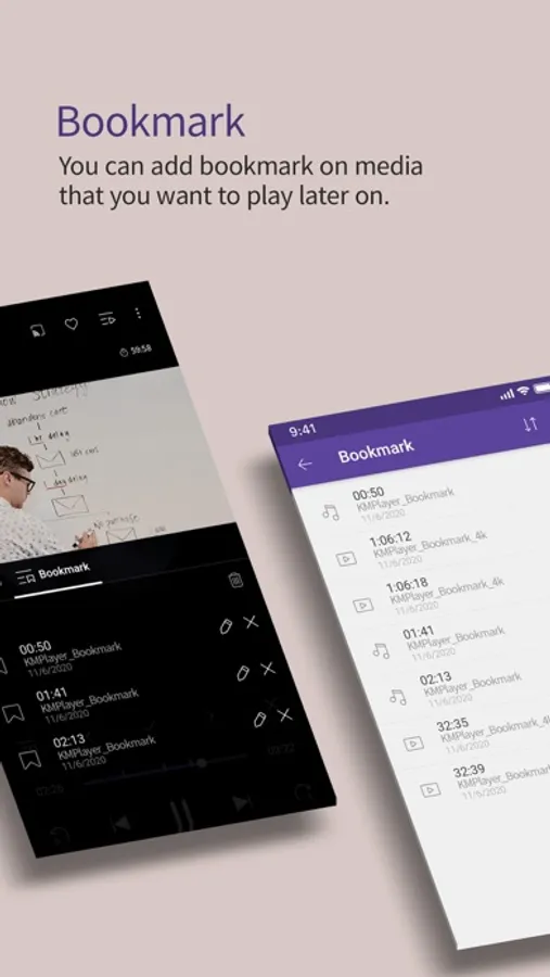 Along with the flawless playback, enjoy the rich features of the player including quick button, bookmark, subtitle settings, and play speed settings!
