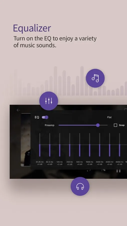 · Equalizer: Save separate equalizers for music & video