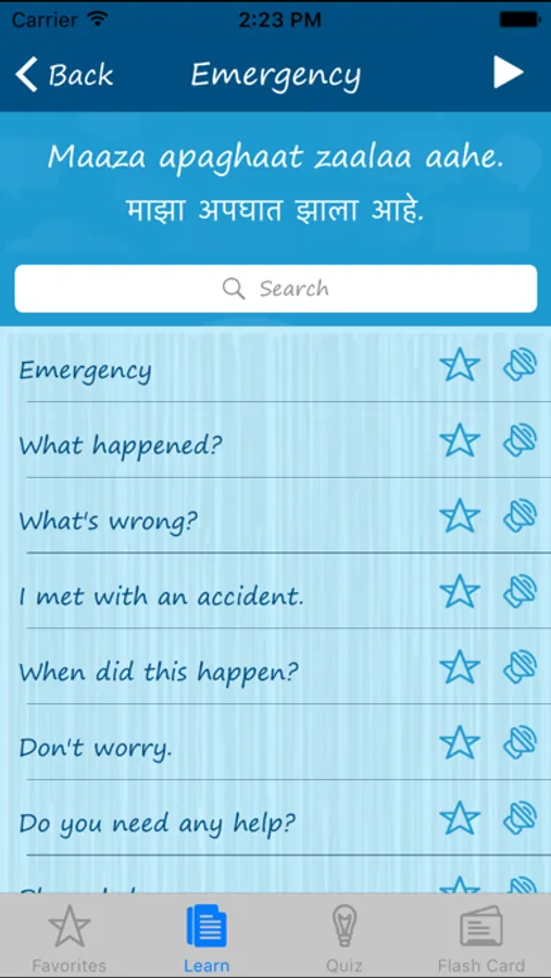 If you are determined to learn a specific category of words, Learn Marathi Quickly will enable you that. It provides Marathi translation for most frequently used words and phrases across 33 categories. You can use it like an English to Marathi dictionary for 1100+ Marathi words and useful phrases in Marathi. It’s indeed a great handy tool that will get you talking conversational language fast.
