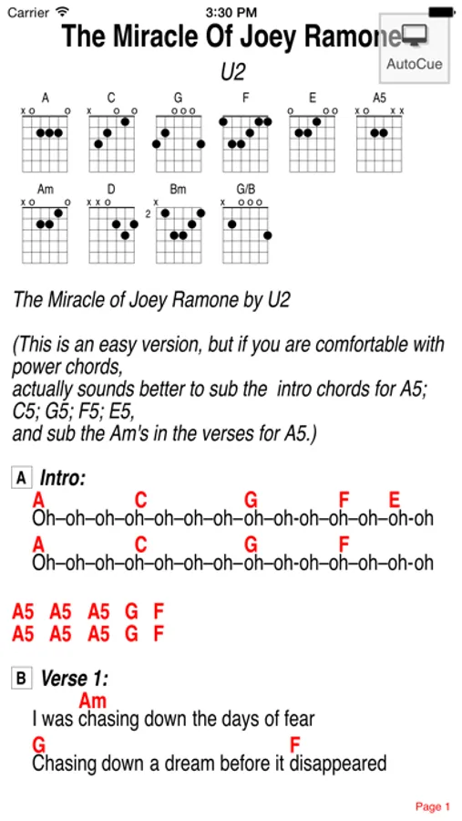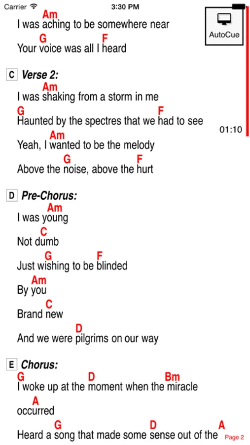 GuitarTapp automatically adjusts songs to fit your screen using the innovative IntelliWrap technique. ChordPro offers a truly handsfree experience when using the AutoCue feature, and is able to be controlled by external footswitches, keyboards and other devices running ChordPro.