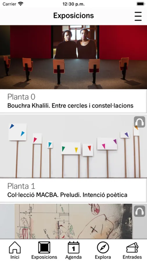 We have updated the application with a new design that is more intuitive and accessible to all. Now you can enjoy more and better images, audioguides and explanatory pages on the works in the MACBA Collection, detailed information on temporary exhibitions and activities, videos, curiosities and all the practical information for visiting the Museum.