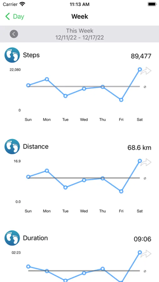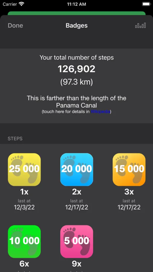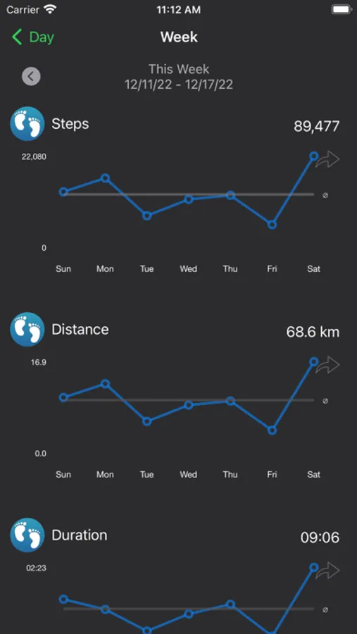 Happy Feet integrates with the Health app in order to display data collected by your Apple Watch. It can display your step count and walking distance.