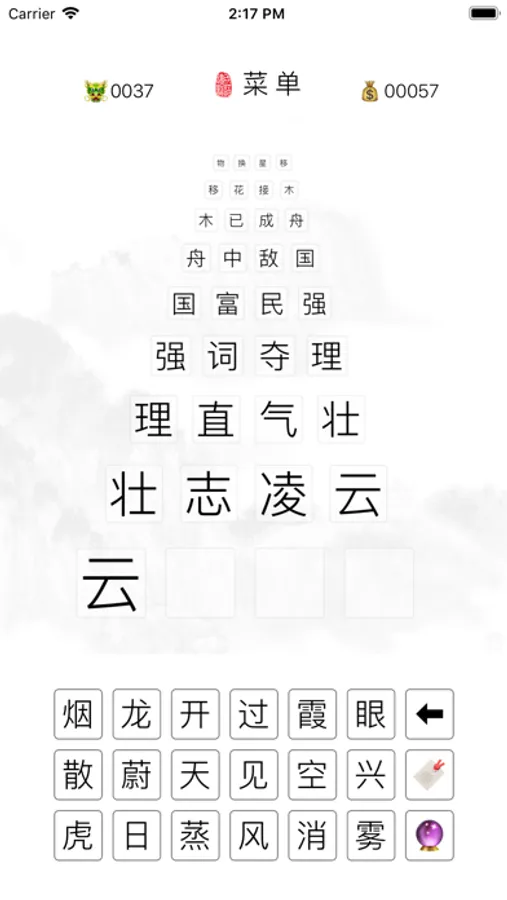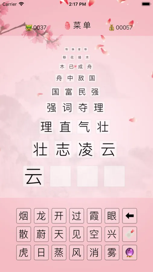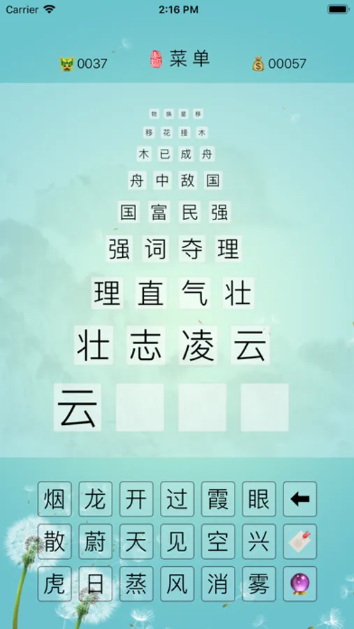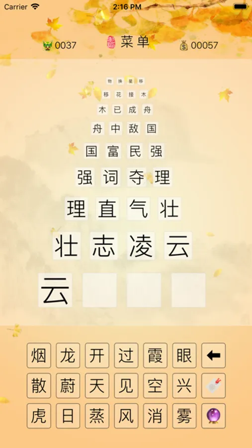 3. 游戏将可接的成语组成打乱显示,供玩家选择,不会也能猜成语。