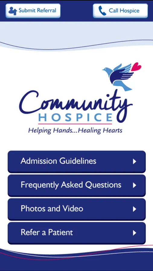 Use our app to make a referral to Community Hospice, review admission guidelines, get answers to frequently asked questions, view photos and take a virtual tour of our inpatient facility.