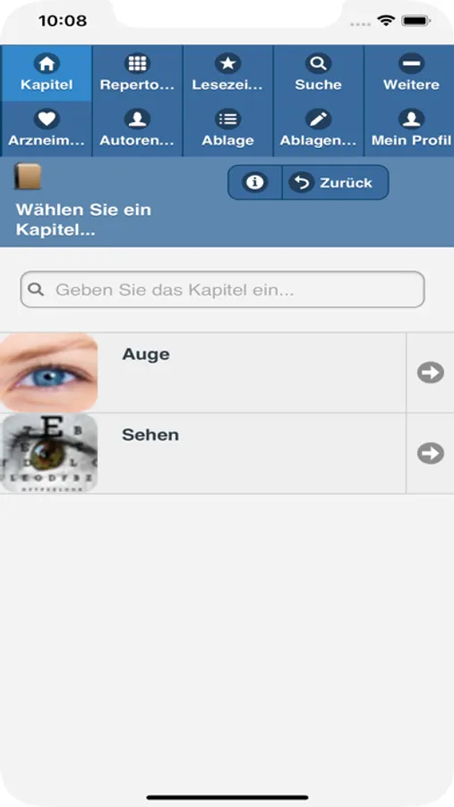 In der kostenpflichtigen Repertorium Synthesis App sind alle Kapitel des Repertoriums enthalten. Die Version mit allen Kapiteln enthält