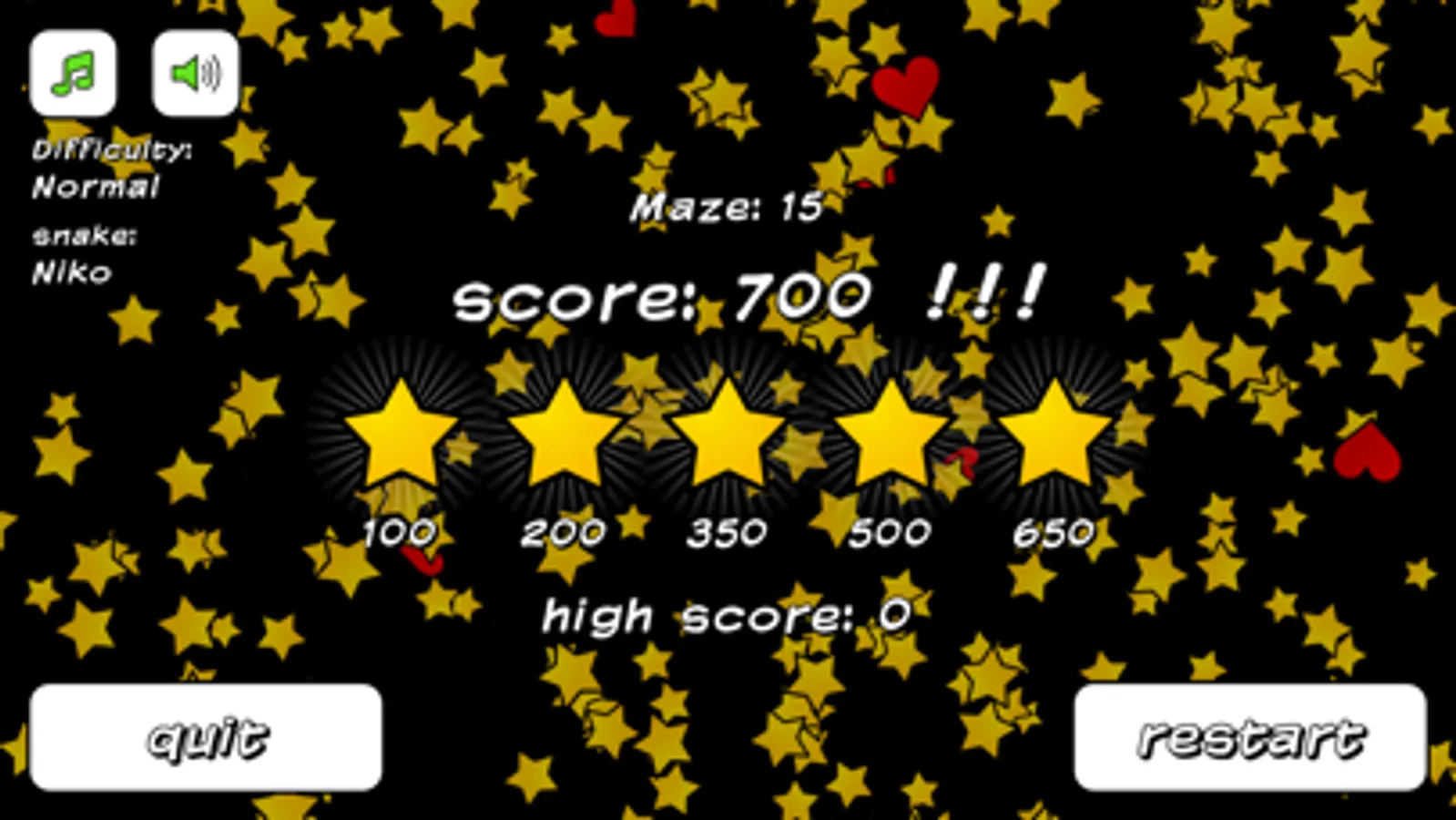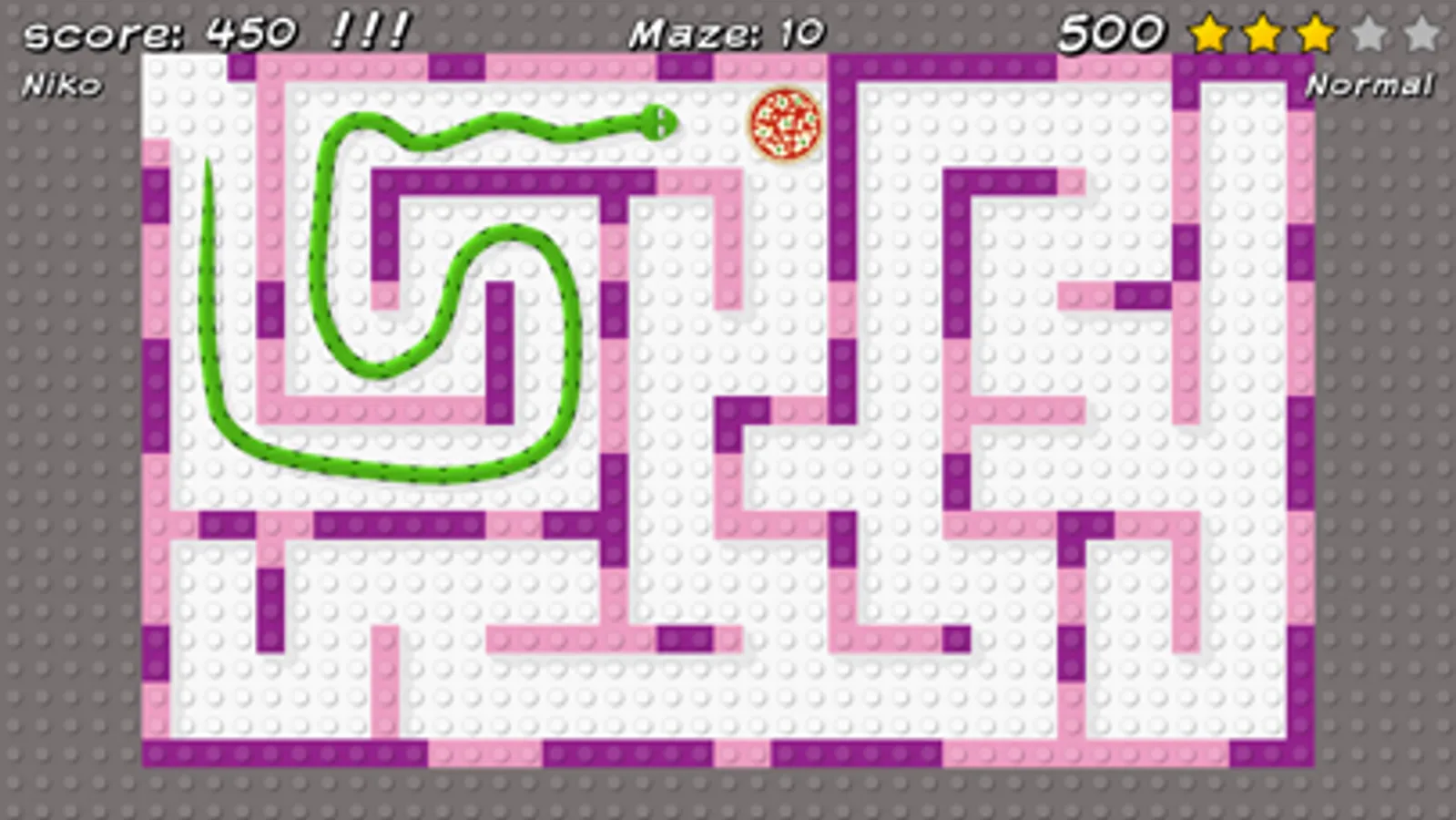 Hint: keep your finger away from the snake's head to get higher score and more stars.