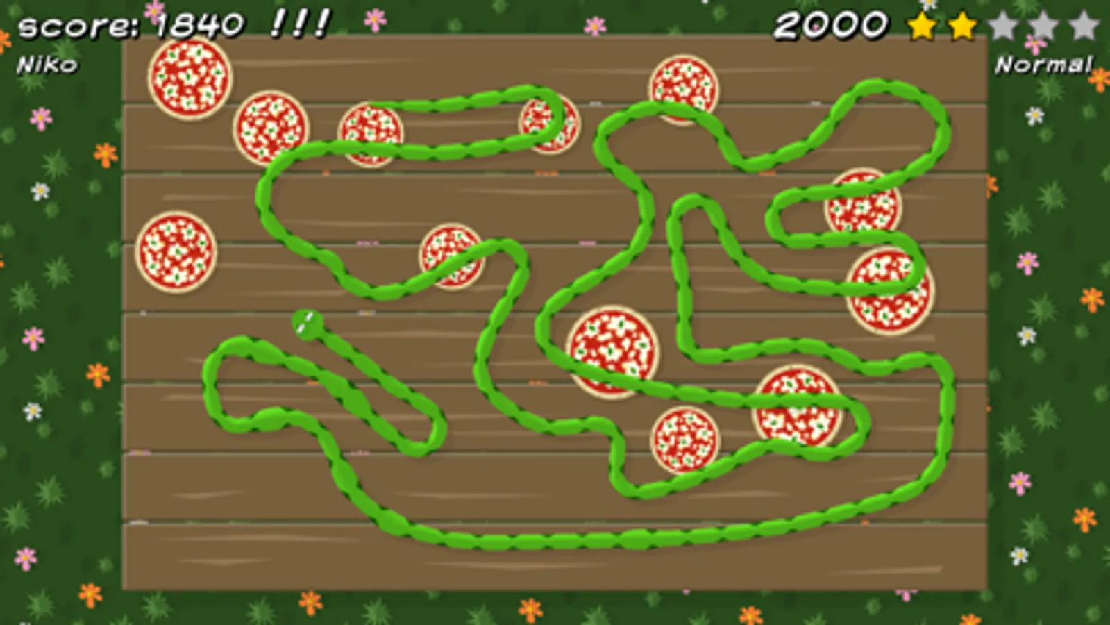 Pizza Snake has 8 levels and your goal is to collect all 80 stars.